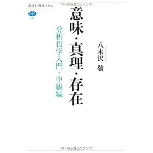 八木沢敬『意味・真理・存在 分析哲学入門中級編』 logical ~ 八木沢敬『分析哲学入門』 logical cypher scapeの続編である(前作を読んでないと分からないという部分はなく、全く別の著作として読んでも問題ない)。 ぐっと内容の濃度が上がっていて、なるほど中級編だという感じ。 すごい色々と