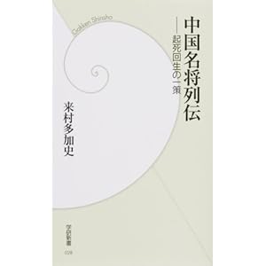 中国名将列伝 SilverFish Files ~ 中国名将列伝 起死回生の一策/来村多加史(学研新書2008) 中国史上から8人の「名将」を選び出し、それぞれの事績を物語風に叙述した本。 単なる略伝ではなく、名将たちの代表的な戦いを取り上げてその顛末を詳しく述べ